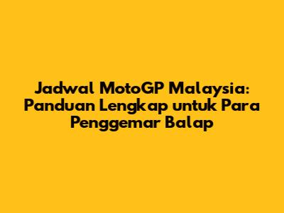 Jadwal MotoGP Malaysia: Panduan Lengkap untuk Para Penggemar Balap