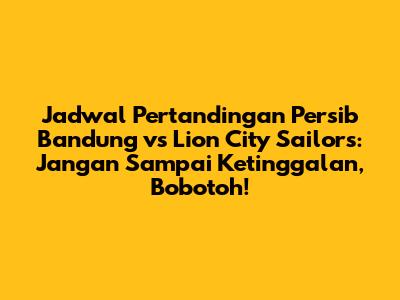 Halo football lover! Pasti pada penasaran kan kapan Persib Bandung bakal berhadapan dengan Lion City Sailors? Nah, ini dia artikel yang bakal ngebahas tuntas jadwal pertandingan Persib vs Lion City, lengkap dengan informasi penting lainnya. Buat para Bobotoh sejati, jangan sampai kelewatan ya!