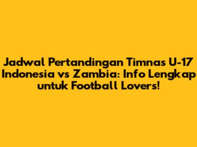 Jadwal Timnas U-17 Indonesia vs Zambia – Wahai football lovers tanah air, bersiaplah untuk menyambut aksi seru dari timnas U-17 Indonesia! Pertandingan melawan Zambia adalah salah satu yang paling dinanti, nih. Kita semua tahu, sepak bola bukan hanya sekadar olahraga, tapi juga soal kebanggaan, semangat juang, dan tentunya, dukungan tanpa henti. Artikel ini akan membahas secara mendalam tentang jadwal pertandingan antara timnas U-17 Indonesia dan Zambia, lengkap dengan informasi penting yang wajib kamu ketahui. Mulai dari tanggal, waktu, lokasi, hingga prediksi singkat tentang jalannya pertandingan. Jadi, siapkan diri kalian untuk mendapatkan informasi terlengkap dan terupdate seputar laga yang akan datang.