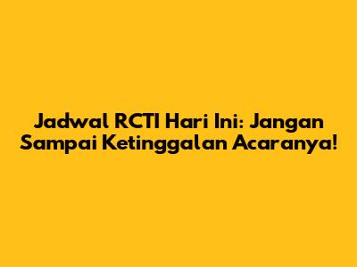 Jadwal RCTI Hari Ini: Jangan Sampai Ketinggalan Acaranya!