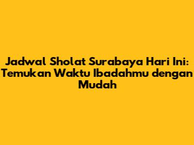 Jadwal sholat Surabaya hari ini terdiri dari lima waktu sholat yang wajib ditunaikan oleh setiap muslim. Berikut adalah penjelasan singkat mengenai waktu-waktu sholat tersebut: