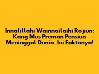 Kabar duka datang dari dunia hiburan tanah air. Bagi football lover yang mengikuti sinetron Preman Pensiun, pasti kenal sosok Kang Mus yang diperankan oleh Epy Kusnandar. Kabar Kang Mus meninggal dunia ini tentu mengejutkan banyak pihak. Artikel ini akan membahas secara mendalam mengenai fakta seputar meninggalnya Kang Mus, penyebabnya, serta reaksi dari para penggemar dan rekan-rekan sesama artis. Jadi, simak terus ya!