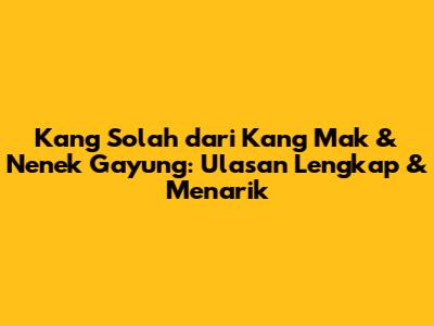 Kang Solah Dari Kang Mak & Nenek Gayung: Ulasan Lengkap & Menarik