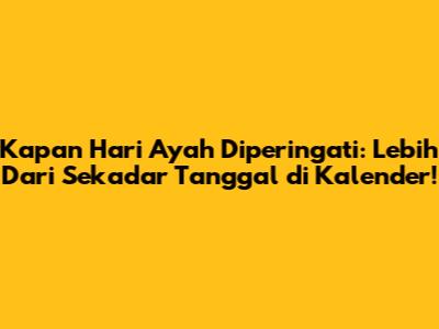 Hari Ayah, sebuah perayaan yang sangat dinantikan oleh banyak football lovers di seluruh dunia, adalah momen istimewa untuk menghormati peran penting seorang ayah dalam kehidupan kita. Tapi, kapan tepatnya Hari Ayah diperingati? Jawabannya ternyata tidak sesederhana yang kita kira, karena tanggal perayaannya bisa berbeda-beda di setiap negara. Mari kita telusuri lebih dalam mengenai jadwal Hari Ayah, sejarahnya yang menarik, tradisi yang unik, serta makna mendalam di baliknya. Siap-siap, karena kita akan menjelajahi dunia perayaan Hari Ayah yang penuh cinta dan kehangatan!