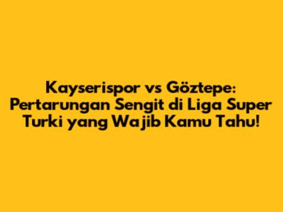 Para football lover, bersiaplah untuk menyimak ulasan lengkap seputar pertandingan seru antara Kayserispor dan Göztepe! Sebagai penggemar sepak bola sejati, kita tentu tak ingin melewatkan setiap momen menegangkan di lapangan hijau, bukan? Artikel ini akan membahas secara mendalam segala hal yang perlu kamu ketahui, mulai dari analisis mendalam kekuatan kedua tim, prediksi skor, berita terkini seputar pemain, hingga jadwal lengkap pertandingan. Jadi, mari kita bedah tuntas duel sengit ini!