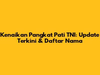 Buat para football lover yang juga tertarik dengan berita terkini seputar TNI, pasti penasaran kan dengan kabar kenaikan pangkat Pati TNI? Nah, kali ini kita bakal bahas tuntas mengenai update terkini seputar kenaikan pangkat di tubuh TNI, siapa saja yang mendapat promosi, dan apa sih sebenarnya yang menjadi dasar kenaikan pangkat ini. Yuk, kita simak bareng-bareng!