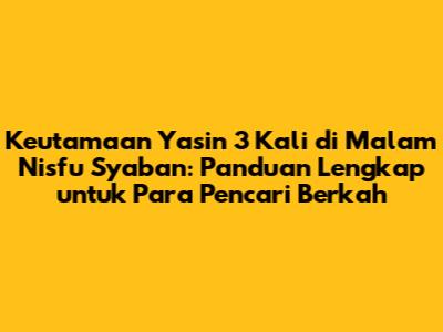 Artikel ini akan mengajak kamu menyelami lebih dalam tentang makna, tata cara, dan hikmah di balik amalan Yasin 3 kali di Malam Nisfu Sya'ban. Kita akan mengupasnya dengan gaya santai tapi tetap berbobot, biar kamu nggak cuma paham tapi juga makin semangat dalam menjalankan ibadah. Siap-siap untuk merasakan vibe spiritual yang beda dari biasanya!