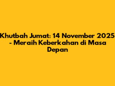 Khutbah Jumat kali ini, di tanggal 14 November 2025, akan membahas tentang bagaimana kita, sebagai umat Muslim, dapat meraih keberkahan dalam kehidupan kita, khususnya di masa depan yang penuh dengan tantangan dan perubahan. Kita akan merenungkan bagaimana ajaran Islam dapat menjadi pedoman utama dalam menghadapi segala situasi, serta bagaimana kita dapat menjadi pribadi yang lebih baik dan memberikan manfaat bagi sesama.