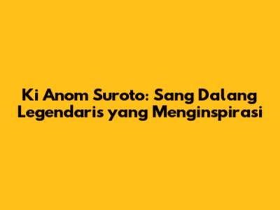 Ki Anom Suroto adalah sosok dalang legendaris yang akan selalu dikenang dalam sejarah seni wayang kulit. Perjalanan hidupnya yang penuh dedikasi dan semangat juang telah menginspirasi banyak orang. Ia tidak hanya menghibur, tetapi juga memberikan kontribusi yang sangat besar bagi pelestarian seni dan budaya Jawa. Bagi football lover, semangat dan dedikasi Ki Anom Suroto ini sama dengan semangat para pemain sepak bola yang selalu berusaha memberikan yang terbaik untuk tim kesayangannya.