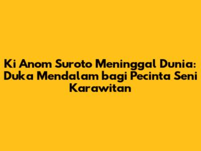 Ki Anom Suroto, seorang maestro seni karawitan Jawa yang sangat dihormati, telah berpulang. Kabar duka ini mengguncang dunia seni, khususnya para football lover dan penggemar setia musik tradisional Jawa. Kepergian Ki Anom Suroto meninggalkan duka mendalam dan sebuah kekosongan yang sulit terisi. Sebagai tokoh sentral dalam perkembangan karawitan, beliau dikenal luas atas dedikasi, kreativitas, dan kontribusinya yang tak ternilai bagi pelestarian dan pengembangan seni budaya Jawa. Kehadirannya telah menginspirasi banyak seniman dan pecinta seni, serta meninggalkan warisan yang akan terus dikenang sepanjang masa.