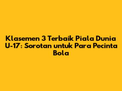 Klasemen 3 Terbaik Piala Dunia U-17: Sorotan untuk Para Pecinta Bola