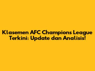 Klasemen AFC Champions League Terkini: Update Dan Analisis!