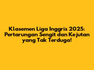 Klasemen Liga Inggris selalu menjadi cerminan dari kerja keras, strategi yang tepat, dan semangat juang. Musim 2025 akan menjadi saksi bisu dari pertarungan sengit dan kejutan yang tak terduga. Mari kita nikmati setiap momennya!