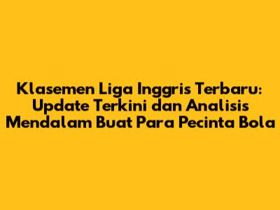 Klasemen Liga Inggris Terbaru