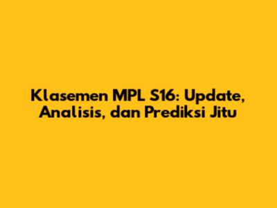 Klasemen MPL S16: Update, Analisis, Dan Prediksi Jitu