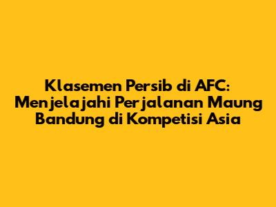 Persib Bandung, sang kebanggaan football lover Jawa Barat, memiliki sejarah panjang dan berkesan dalam kancah sepak bola Indonesia. Namun, bagaimana klasemen Persib di AFC? Artikel ini akan membahas tuntas perjalanan Persib di kompetisi AFC (Asian Football Confederation), mulai dari partisipasi, prestasi, hingga harapan para Bobotoh yang selalu setia mendukung.
