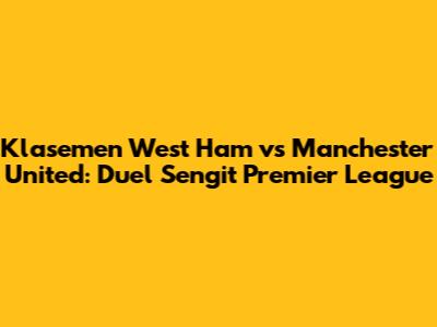 Klasemen West Ham Vs Manchester United Terkini