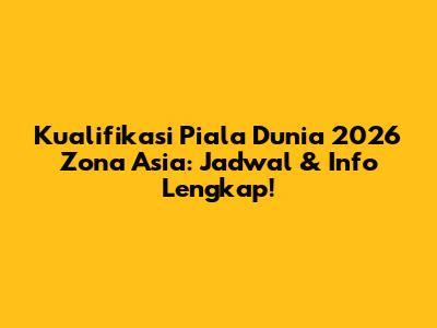 Football lover, siap-siap! Mimpi negara-negara Asia untuk tampil di panggung dunia, yaitu Piala Dunia 2026, akan segera dimulai. Kualifikasi Piala Dunia 2026 Zona Asia akan menjadi medan pertempuran sengit bagi tim-tim terbaik di benua ini. Artikel ini akan membahas tuntas semua yang perlu kamu ketahui tentang babak kualifikasi ini, mulai dari format, jadwal, hingga tim-tim yang berpotensi lolos. Jadi, pantengin terus ya!