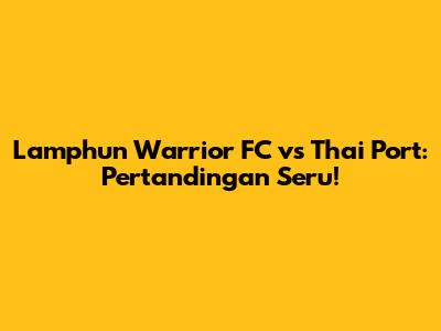 Hey football lover! Siap-siap buat bahas pertandingan seru antara Lamphun Warrior FC dan Thai Port FC! Duel ini pastinya sayang banget buat dilewatin. Yuk, kita bedah habis-habisan mulai dari performa tim, strategi yang mungkin diterapkan, sampai pemain kunci yang bakal jadi sorotan. Dijamin, abis baca ini, makin siap buat dukung tim kesayangan!