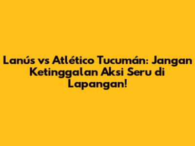 Football lovers, jangan sampai ketinggalan jadwal pertandingan seru antara Lanús vs Atlético Tucumán! Catat tanggal dan waktu pertandingannya agar kamu bisa menyaksikan aksi-aksi terbaik dari kedua tim. Jadwal pertandingan sangat penting agar kamu bisa merencanakan waktu untuk menonton dan mendukung tim kesayanganmu.