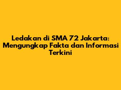Ledakan di SMA 72 Jakarta: Mengungkap Fakta dan Informasi Terkini