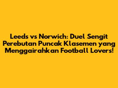 Siapkan diri kalian untuk merasakan setiap detak jantung yang berpacu kencang, setiap sorakan kegembiraan, dan setiap desah kekecewaan. Inilah esensi dari sepak bola yang kita cintai. Jangan lewatkan setiap detik dari pertarungan epik ini, karena di sinilah gairah sepak bola benar-benar hidup. Mari kita bersama-sama menyaksikan siapa yang akan keluar sebagai pemenang di duel Leeds vs Norwich yang akan menjadi salah satu highlight musim ini. Sampai jumpa di lapangan hijau, football lovers!