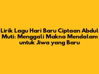 Kualitas lirik lagu Hari Baru ciptaan Abdul Mu'ti juga menjadi faktor penting. Penulisan liriknya yang sederhana namun kuat membuatnya mudah diingat dan dipahami. Tidak butuh waktu lama untuk meresapi maknanya, dan sekali terserap, pesannya akan melekat di benak. Ini bukan sekadar lagu pop sesaat, melainkan sebuah karya abadi yang terus relevan karena kedalaman maknanya. Ia adalah simbol harapan yang tak pernah padam, sebuah soundtrack untuk setiap perjalanan hidup yang penuh liku. Jadi, selagi dunia terus berputar, Hari Baru akan selalu ada untuk mengingatkan kita bahwa setiap detik adalah kesempatan emas untuk memulai segalanya dari awal dengan semangat yang menyala-nyala. Sungguh inspiratif, bukan?