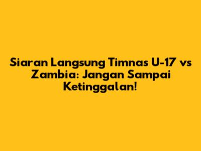 Jadi, jangan sampai ketinggalan siaran langsung Timnas U-17 vs Zambia ya! Dukung terus Garuda Muda dan harumkan nama Indonesia di kancah internasional!
