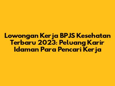 Lowongan Kerja BPJS Kesehatan Terbaru 2023