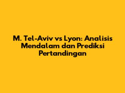 Nah, itulah dia analisis mendalam dan prediksi pertandingan antara M. Tel-Aviv dan Lyon. Pertandingan ini pasti akan menjadi tontonan yang sangat menarik bagi para football lover. Kedua tim punya kualitas yang seimbang dan akan berusaha untuk memenangkan pertandingan. Jadi, jangan sampai ketinggalan ya!