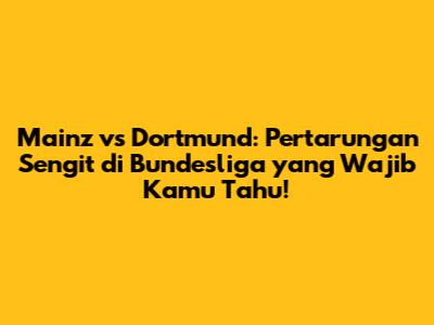 Pertandingan Mainz vs Dortmund selalu menjadi tontonan menarik bagi para penggemar Bundesliga. Kedua tim memiliki gaya bermain yang berbeda, namun sama-sama memiliki potensi untuk menciptakan kejutan. Sebelum kita melangkah lebih jauh, mari kita bedah prediksi dan analisis mendalam mengenai kekuatan kedua tim. Jangan khawatir, kita akan membahasnya dengan santai dan mudah dipahami, seperti ngobrol bareng teman di warung kopi.