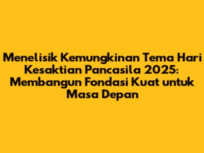 Tema Hari Kesaktian Pancasila 2025 akan menjadi cerminan dari tantangan dan peluang yang dihadapi bangsa Indonesia. Pemilihan tema yang tepat akan menjadi landasan untuk membangun fondasi yang kuat bagi masa depan. Sebagai warga negara, kita memiliki tanggung jawab untuk memahami makna di balik tema tersebut dan berkontribusi secara aktif dalam memperingati hari bersejarah ini. Mari kita jadikan Hari Kesaktian Pancasila sebagai momentum untuk memperkuat persatuan dan kesatuan bangsa, serta mewujudkan cita-cita luhur bangsa Indonesia.