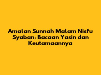 Malam Nisfu Syaban, yaitu malam pertengahan bulan Syaban yang jatuh pada tanggal 15, memiliki keistimewaan tersendiri dalam Islam. Banyak riwayat hadits yang menjelaskan keutamaan malam ini. Dikatakan bahwa pada malam ini, Allah SWT akan mengampuni dosa-dosa umat-Nya yang memohon ampunan, membebaskan mereka dari siksa neraka, dan membuka pintu rahmat-Nya seluas-luasnya. Tidak heran jika malam ini sering disebut sebagai malam pengampunan dosa dan malam terbukanya pintu rezeki. Keutamaan ini tentu menjadi daya tarik tersendiri bagi para pecinta ibadah untuk berlomba-lomba mengamalkan amalan baik. Salah satu amalan yang sangat dianjurkan adalah membaca Surat Yasin. Surat Yasin sendiri merupakan jantungnya Al-Qur'an, memiliki banyak keutamaan dan fadhilah yang luar biasa. Menggabungkan keutamaan Surat Yasin dengan keistimewaan malam Nisfu Syaban tentu akan menghasilkan pahala yang berlipat ganda. Maka dari itu, niat membaca Yasin di malam Nisfu Syaban menjadi penting untuk diperhatikan agar ibadah kita lebih khusyuk dan bernilai di hadapan Allah SWT. Dengan niat yang tulus dan ikhlas karena Allah, setiap bacaan dan amalan yang kita lakukan akan mendatangkan keberkahan yang tak terhingga. Selain membaca Yasin, amalan lain yang juga dianjurkan pada malam Nisfu Syaban antara lain shalat malam, berdoa, beristighfar, bersedekah, dan memperbanyak dzikir. Namun, fokus kita kali ini adalah pada amalan membaca Yasin di malam Nisfu Syaban. Mari kita persiapkan diri, lahir dan batin, untuk menyambut malam penuh berkah ini dengan ibadah yang maksimal.