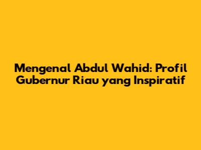 Sebagai football lover sejati, kita semua tahu bahwa sepak bola tidak hanya tentang pertandingan di lapangan hijau. Sama halnya dengan politik dan pemerintahan, yang seringkali terasa jauh dari kehidupan sehari-hari. Tapi, mari kita coba dekati topik ini dengan cara yang lebih easy going. Artikel ini akan membahas tentang sosok Abdul Wahid, seorang tokoh penting di Provinsi Riau yang menjabat sebagai gubernur. Kita akan menyelami lebih dalam tentang siapa dia, bagaimana sepak terjangnya, dan apa saja yang telah ia lakukan untuk memajukan Riau. Jadi, siapkan camilan dan minuman favoritmu, mari kita mulai!