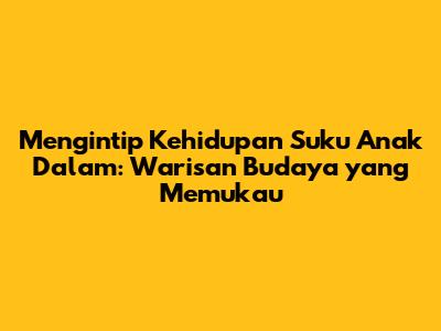 Mengintip Kehidupan Suku Anak Dalam: Warisan Budaya yang Memukau