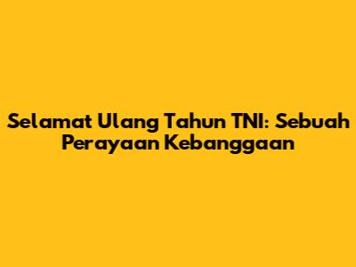 Selamat Ulang Tahun TNI: Sebuah Perayaan Kebanggaan