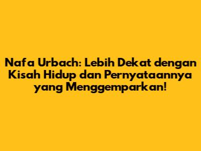 Nafa Urbach adalah sosok yang menginspirasi dan patut diteladani. Ia menunjukkan bahwa kita semua bisa menjadi kuat, tegar, dan bijaksana dalam menghadapi berbagai tantangan hidup. Ia juga menunjukkan bahwa kita semua memiliki tanggung jawab untuk ikut serta dalam membangun masyarakat yang lebih baik. Semoga artikel ini bermanfaat dan bisa memberikan inspirasi bagi kita semua!