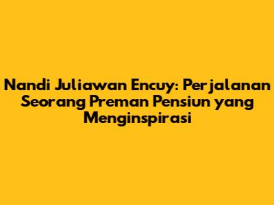 Nandi Juliawan adalah sosok yang inspiratif. Dari seorang preman menjadi aktor yang sukses, ia membuktikan bahwa perubahan itu selalu mungkin. Melalui peran Encuy dalam Preman Pensiun, Nandi Juliawan berhasil memberikan hiburan sekaligus pesan moral kepada masyarakat. Kisah hidupnya menjadi pengingat bahwa dengan tekad, semangat, dan dukungan, kita semua bisa meraih kehidupan yang lebih baik. Semoga artikel ini memberikan gambaran yang jelas tentang perjalanan hidup dan peran penting Nandi Juliawan.