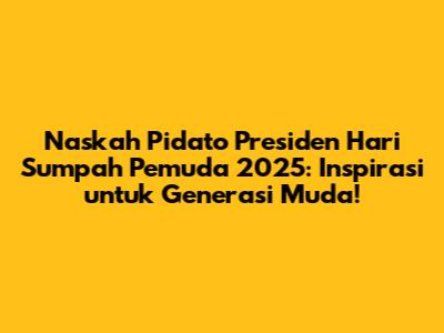 Naskah pidato presiden Hari Sumpah Pemuda 2025 pasti akan penuh dengan inspirasi bagi generasi muda. Pidato tersebut akan memberikan gambaran tentang tantangan yang dihadapi bangsa, harapan pemerintah terhadap generasi muda, dan ajakan untuk berkontribusi positif bagi Indonesia. Sebagai generasi muda, kita harus menyimak pidato tersebut dengan seksama dan mengambil pelajaran yang berharga. Kita harus menjadikan pidato tersebut sebagai motivasi untuk terus belajar, berkarya, dan memberikan yang terbaik bagi bangsa dan negara.