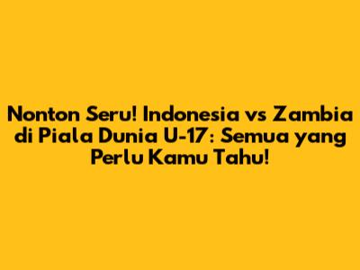 Football lovers, bersiaplah untuk merasakan euforia Piala Dunia U-17! Pertandingan yang paling ditunggu-tunggu, antara Indonesia dan Zambia, sudah di depan mata. Jangan sampai ketinggalan momen bersejarah ini, karena timnas Garuda Muda akan berjuang mati-matian di lapangan hijau. Artikel ini akan menjadi panduan lengkap buat kamu semua, mulai dari jadwal siaran langsung, informasi tim, hingga prediksi menarik. Jadi, siap-siap buat merasakan keseruan dan dukungan tanpa batas untuk tim kesayangan kita!