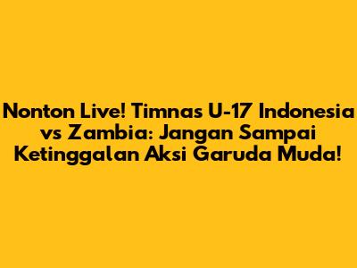 Hai, para football lovers! Udah pada siap belum buat nonton aksi seru dari Timnas U-17 Indonesia? Jangan sampai ketinggalan, ya, karena mereka bakal tanding melawan Zambia! Pertandingan ini bukan cuma sekadar laga persahabatan biasa, lho. Ini adalah kesempatan emas buat para pemain muda kita unjuk gigi dan menunjukkan kemampuan terbaik mereka di lapangan hijau. Kita sebagai pendukung setia, wajib banget nih memberikan dukungan penuh buat mereka. Siapkan cemilan, minuman, dan pastinya semangat membara untuk mendukung Garuda Muda! Jangan lupa, jadwal live streaming juga penting banget biar kita nggak ketinggalan momen-momen menegangkan di lapangan. Yuk, simak terus artikel ini karena kita bakal bahas lengkap seputar pertandingan ini, mulai dari jadwal, prediksi, sampai link streaming yang bisa kamu akses.