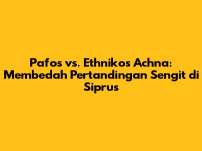 Pafos vs. Ethnikos Achna FC adalah salah satu laga yang menarik perhatian para football lover di Siprus. Kedua tim memiliki sejarah dan ambisi masing-masing yang membuat pertandingan ini selalu dinantikan. Dalam artikel ini, kita akan membahas secara mendalam mengenai kekuatan dan kelemahan kedua tim, menganalisis statistik penting, serta memberikan prediksi yang akurat. Jadi, buat kalian yang penasaran dan ingin tahu lebih banyak tentang pertandingan ini, mari kita bedah bersama!