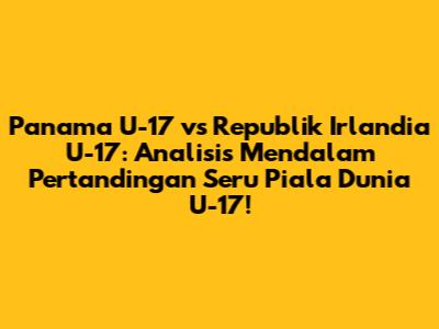 Panama U-17 Vs Rep. Irlandia U-17: Duel Sengit Piala Dunia!