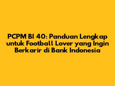 Hey football lover! 👋 Pasti pada penasaran kan sama PCPM BI 40? Program yang lagi hot banget di kalangan fresh graduate yang pengen berkarir di Bank Indonesia (BI). Nah, buat kamu yang punya mimpi jadi bagian dari bank sentral keren ini, yuk simak panduan lengkapnya di artikel ini! Dijamin, setelah baca ini, kamu jadi makin paham dan siap buat daftar! 😉