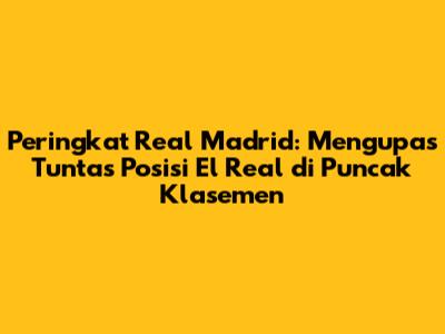 Halo, football lovers! Siapa sih yang nggak kenal sama klub legendaris asal Spanyol, Real Madrid? Klub ini selalu jadi perbincangan hangat di dunia sepak bola, terutama soal performa dan posisinya di klasemen. Buat kamu yang penasaran banget sama peringkat Real Madrid saat ini, yuk kita bedah tuntas bareng-bareng! Real Madrid, atau yang akrab disapa El Real, memang dikenal sebagai salah satu klub tersukses dalam sejarah sepak bola. Koleksi trofi mereka yang segudang, mulai dari La Liga Spanyol hingga Liga Champions UEFA, jadi bukti sahih dominasi mereka di pentas Eropa dan dunia. Tapi, namanya juga kompetisi, nggak selamanya mereka berada di puncak, kan? Nah, di sinilah letak keseruan memantau peringkat Real Madrid di setiap musimnya. Apakah mereka masih kokoh di posisi teratas, ataukah ada tantangan baru dari rival-rivalnya? Artikel ini akan mengupas habis semua informasi yang kamu butuhkan, mulai dari posisi mereka di klasemen La Liga, performa terkini, hingga analisis mendalam mengenai faktor-faktor yang memengaruhi naik turunnya peringkat klub billionaire ini. Jadi, siap-siap ya, guys, kita akan menyelami dunia Real Madrid lebih dalam lagi! Kita akan lihat bagaimana strategi tim, performa pemain bintang, dan bahkan faktor keberuntungan turut berperan dalam menentukan peringkat Real Madrid di setiap pertandingan. Jangan sampai ketinggalan info terbarunya, karena dunia sepak bola selalu dinamis dan penuh kejutan. Bersiaplah untuk terpukau dengan statistik dan fakta menarik seputar Los Blancos.