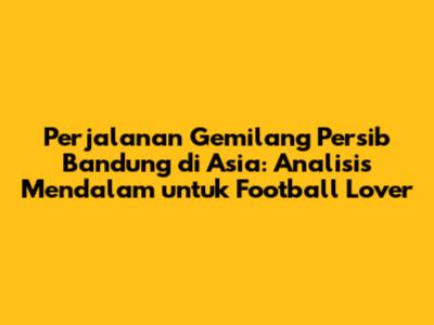 Persib Bandung adalah tim yang memiliki sejarah panjang dan menarik di dunia sepak bola. Mereka telah mengukir prestasi yang membanggakan di kancah nasional, dan memiliki potensi untuk meraih prestasi yang lebih tinggi di kancah Asia. Dengan semangat juang yang tinggi dan dukungan dari berbagai pihak, Persib akan terus berjuang untuk meraih kesuksesan di masa depan.
