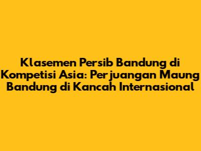 Football lover sejati pasti penasaran kan, gimana sih sebenarnya posisi Persib Bandung di kompetisi tingkat Asia? Nah, kali ini kita bakal bahas tuntas klasemen Persib Bandung di berbagai ajang bergengsi di Asia. Yuk, kita bedah satu per satu perjalanan Maung Bandung di kancah internasional!