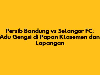 Analisis Klasemen: Posisi Persib Bandung dan Selangor FC