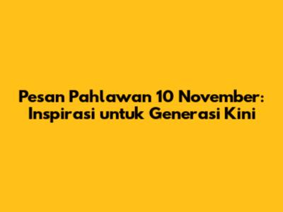 Pesan Pahlawan 10 November: Inspirasi Untuk Generasi Kini