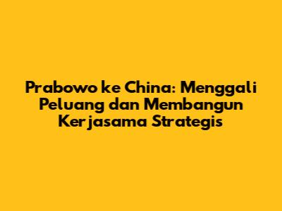 Prabowo ke China: Menggali Peluang dan Membangun Kerjasama Strategis